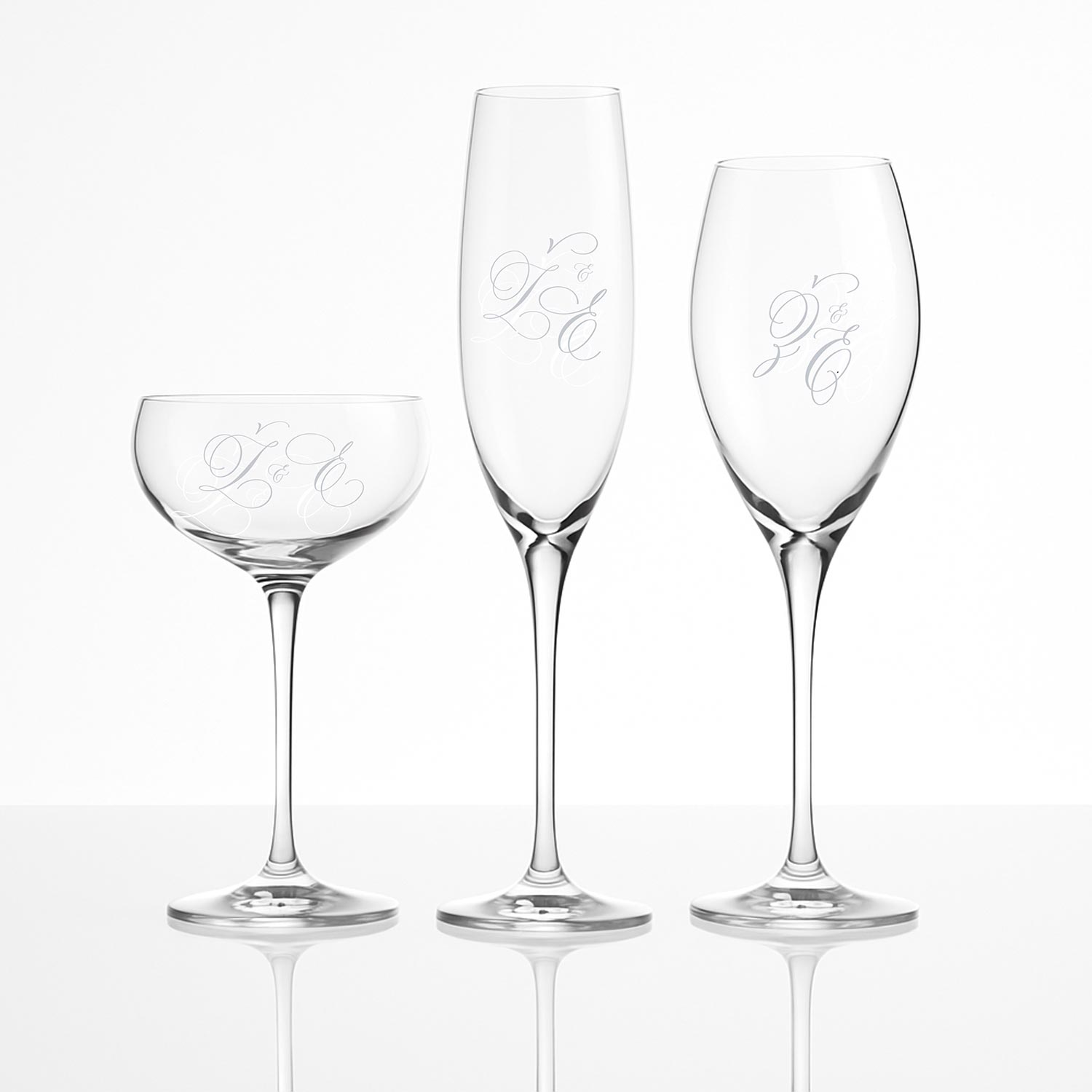 Celebrate the eternal bond of love with a set of champagne glasses. The glasses are personalised with hand-engraved calligraphy.