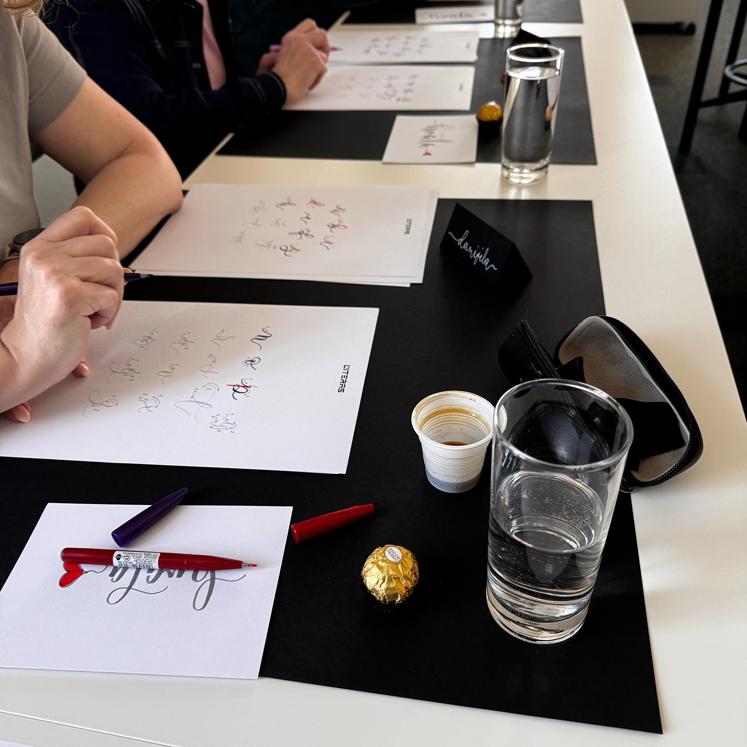 Črke in vino je kreativni dogodek na katerem bomo ustvarjali unikatno kaligrafsko pisavo. Triurni potop v barve, linije in žlahtne okuse v majhni skupini do 12 oseb.
