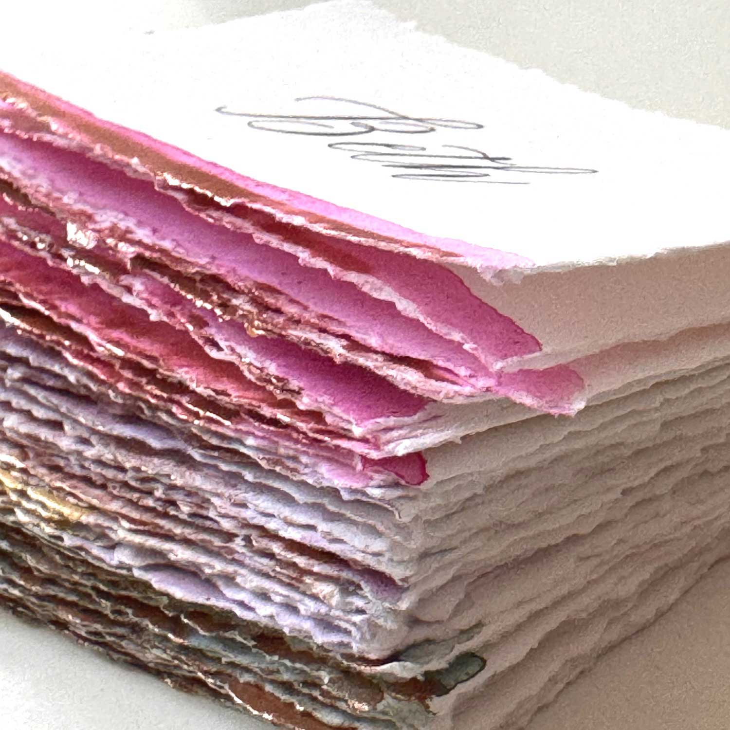 - Ročno trganje roba, ki daje videz naravno izdelanega papirja (različni kaligrafski papirji 250 g).