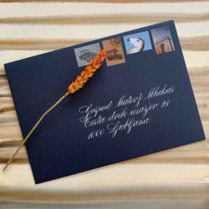Kaligrafsko napisan naslov na kuverti C5 po vaši barvni izbiri.