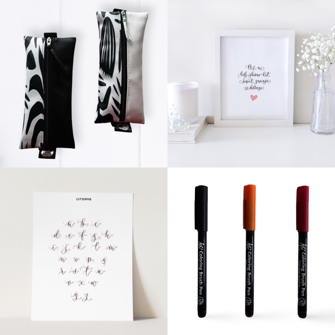 - Izvirnost: paket je sestavljen z izbranimi pripomočki za pisanje moderne kaligrafije.